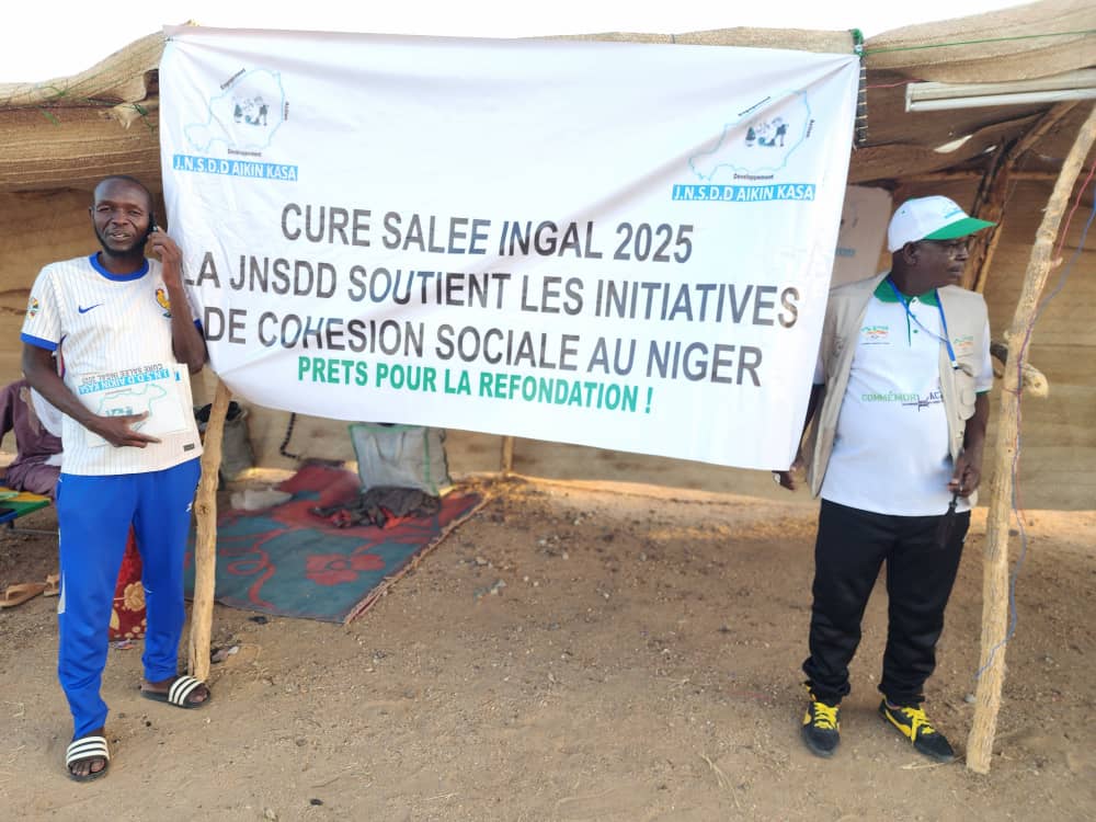La JNSDD AIKIN KASA a marqué sa présence à la 52ème édition de la cure salée 2025 tenue à Ingall (région d’Agadez) par une délégation de sept personnes. Cette mission conduite par le Secrétaire Exécutif de l’association et coordonnateur du projet Alarme Phone Sahara est composée du personnel (administratif, supporter temporaire et lanceurs d’alerte). Trois jours durant, l’équipe a en plus de la présentation de la mission générale de la JNSDD sensibilisé les visiteurs du stand sur les objectifs visés à travers le projet APS. Pour la visibilité il a été exposé des kakémonos, des dépliants et des cartes de visites comme supports à utiliser pour contacter le personnel en cas de situation de détresse lors de la traversée du désert par des candidats et candidats insuffisamment informés(e)s sur les risques de la traversée du désert. Plusieurs dizaines de visiteurs ont été enregistrés au stand de la JNSDD. Il est à noter tout particulièrement la présence des autorités administratives et coutumières venues du Niger et des pays amis et une forte délégation des membres du gouvernement avec à leur tête le ministre de l’agriculture et de l’élevage son excellence Colonel Ousmane Elhadj Ibrahim.